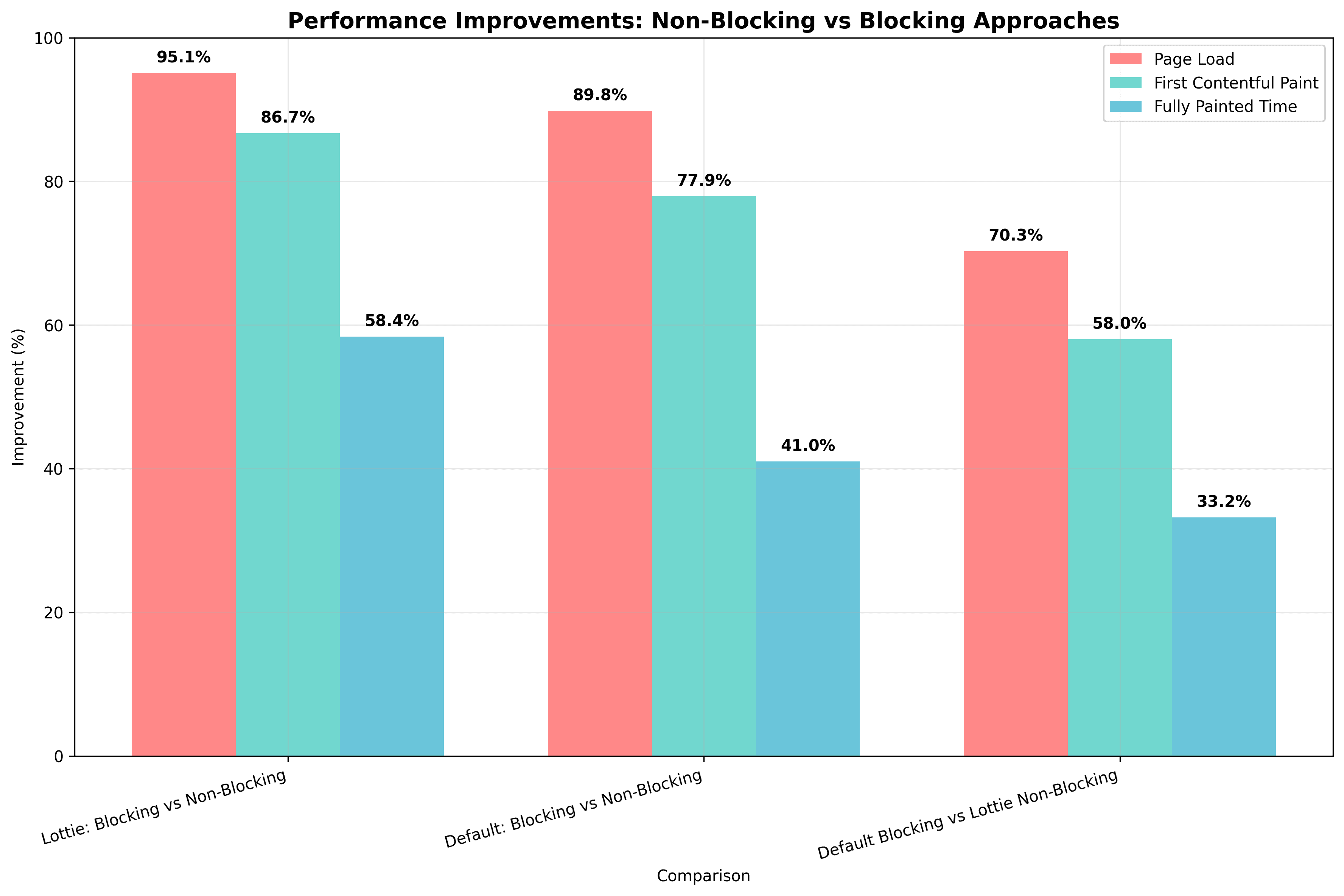 With complex animations like Lottie, the benefits become even more dramatic because the traditional approach forces users to wait for the entire animation sequence before any meaningful content appears.